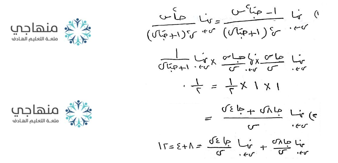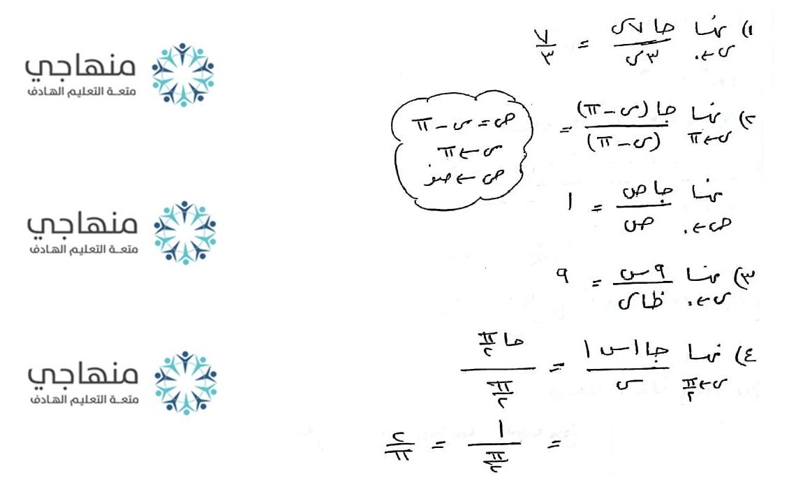 إجابات تدريبات الدرس - نهايات اقترانات مثلثية