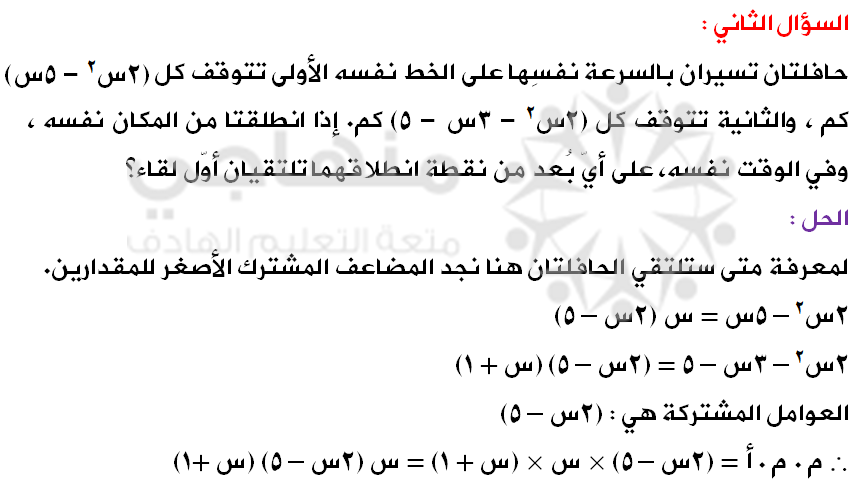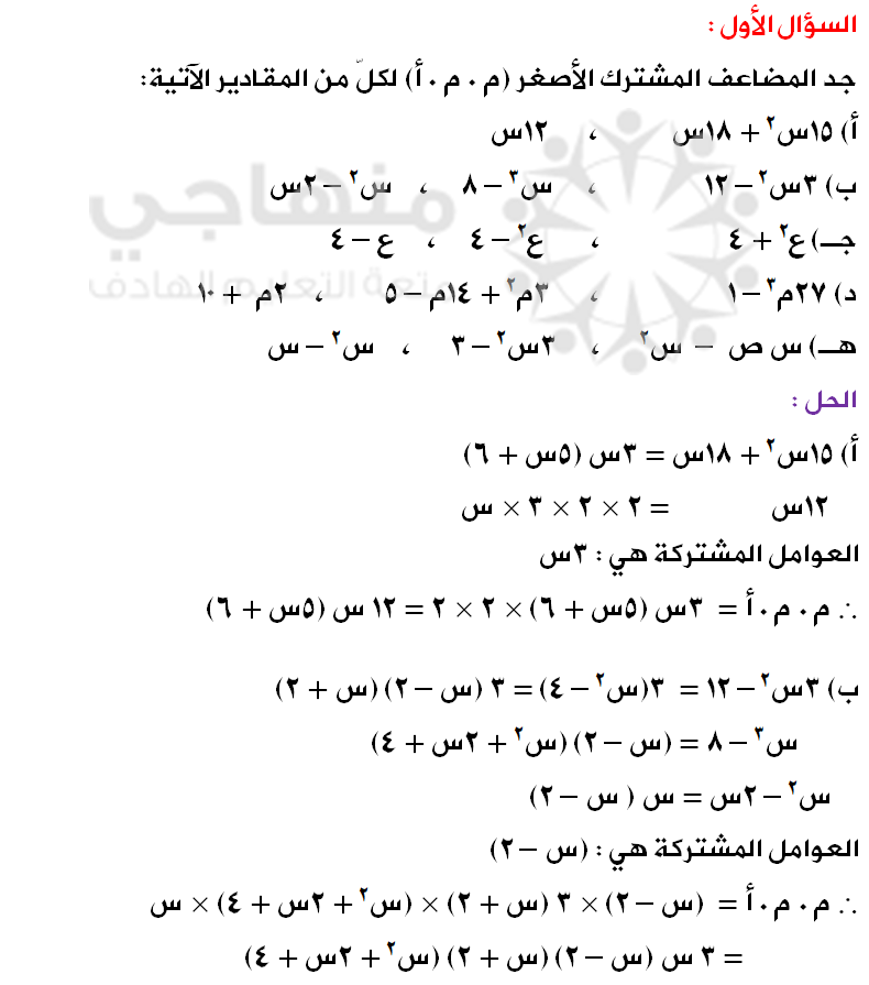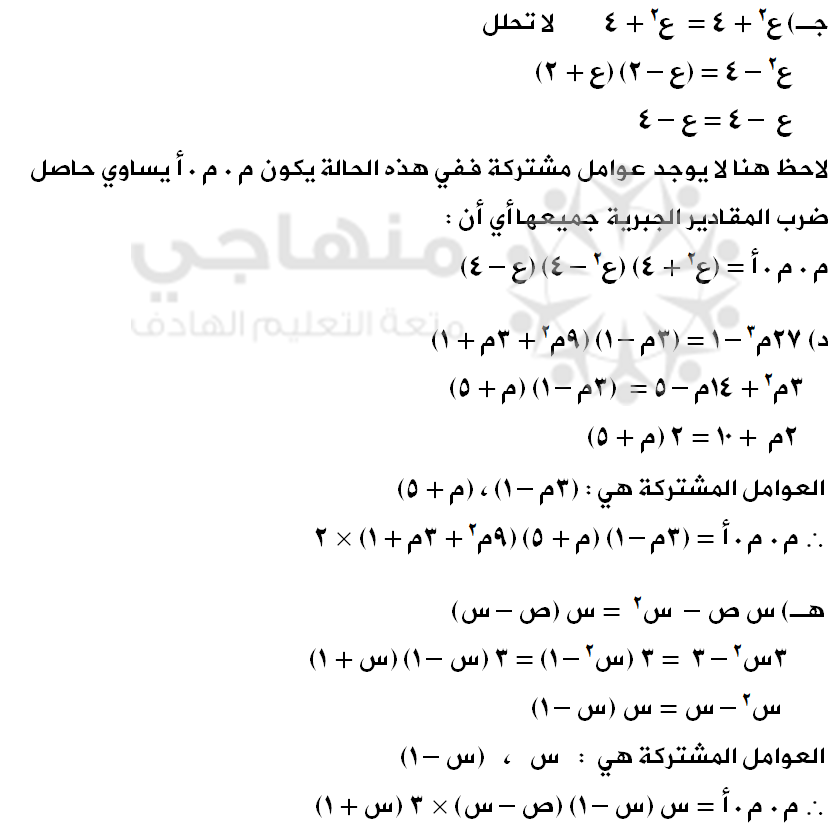المضاعف المشترك الأصغر لعدد من المقادير الجبرية هو حاصل ضرب العوامل الأوليّة لها (دون تكرار المتشابه منها).
