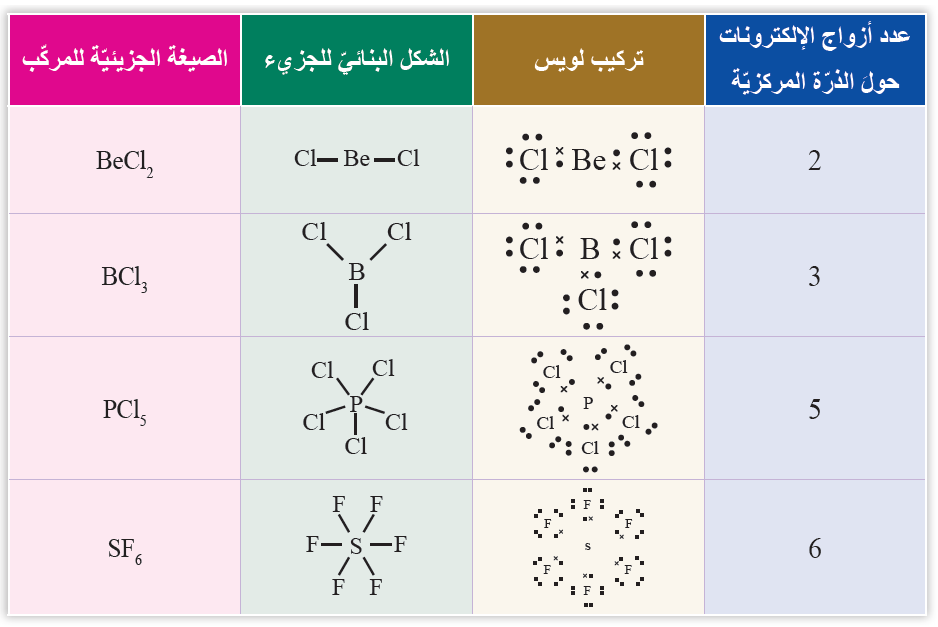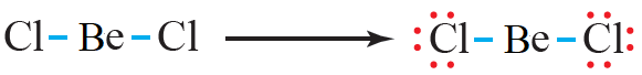 لاحظ أن قاعدة الثمانية انطبقت على ذرتي الكلور ولم تنطبق على ذرة البريليوم، وأن عدد أزواج الإلكترونات حول ذرة البريليوم أقل من (8).