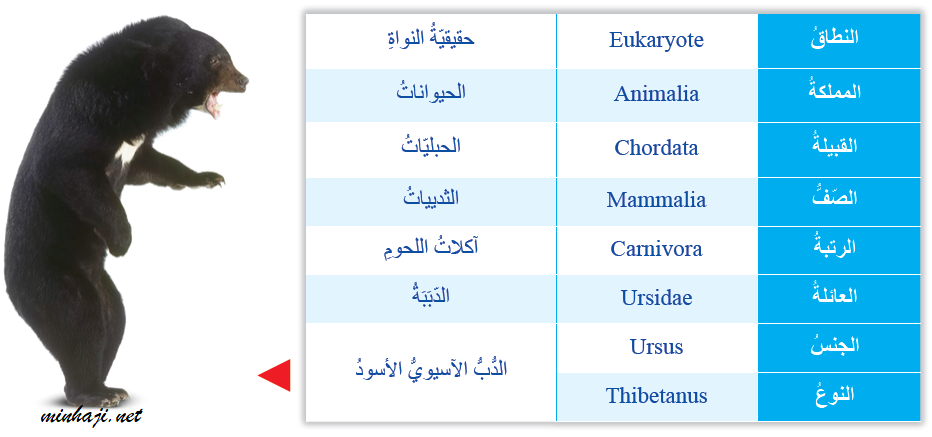 مستويات التصنيف في الدب الأسيوي الأسود.