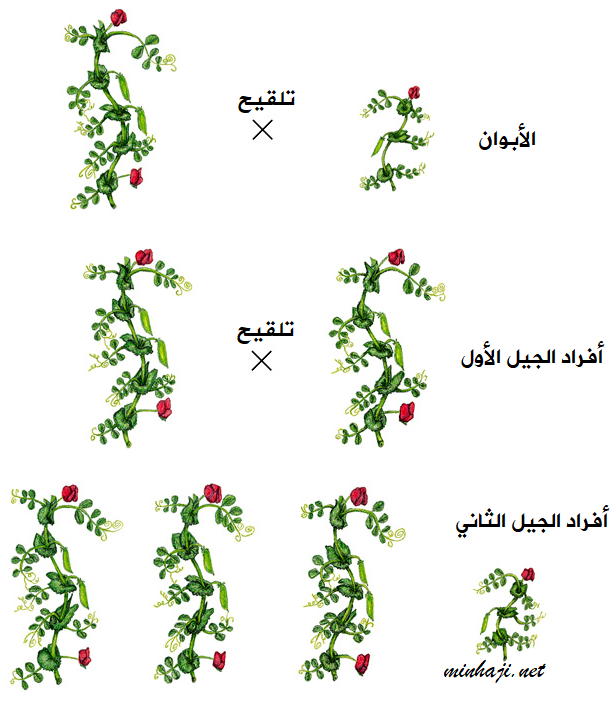 - نتج من تلقيحهما أفراد طويلة الساق (الجيل الأول).