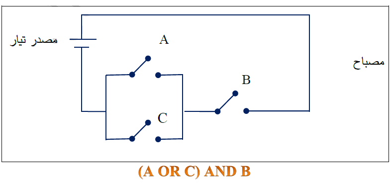 العبارة المنطقية التي تمثلها الدائرة الكهربائية: