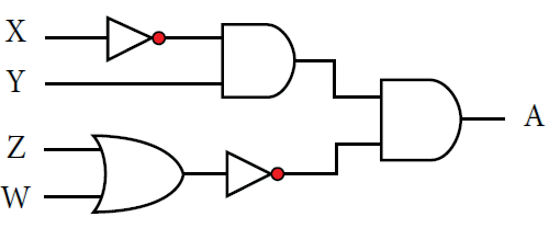 قيمة A علماً بأن X = 0 , Y = 1 , Z = 0 , W = 1