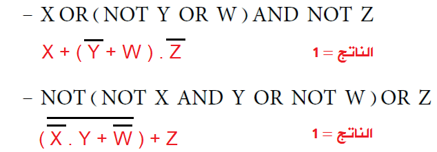 ب- العبارة الجبرية المنطقية: هو ثابت منطقي (0,1) أو متغير منطقي مثل (X,Y) أو مزيج من الثوابت والمتغيرات المنطقية يجمع بينها عمليات منطقية.