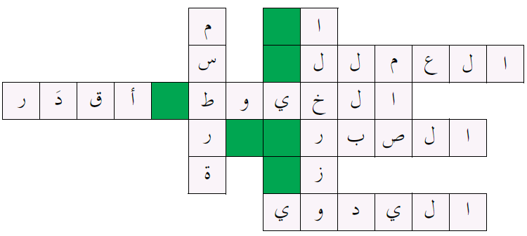 بعد شطب أحرف الكلمات التي تمثل تتمّات (حلولاً) لما يأتي من عباراتٍ، مع الاحتفاظ بحرف الياء تتبقى جملةٌ مفيدةٌ من ثلاث كلماتٍ هل تستطيع الوصول إليها؟