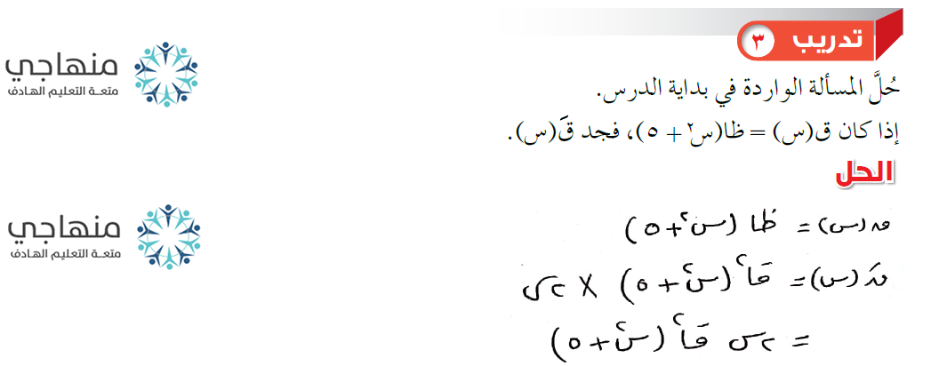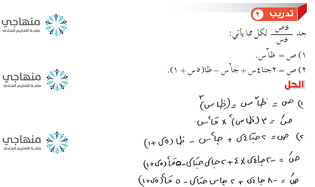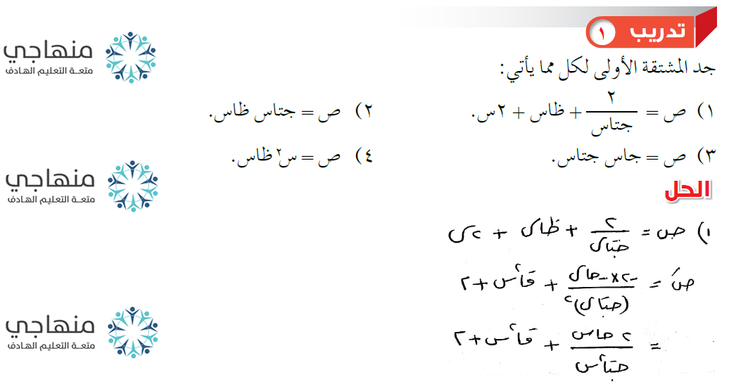 إجابات تدريبات الدرس - مشتقات الاقترانات المثلثية