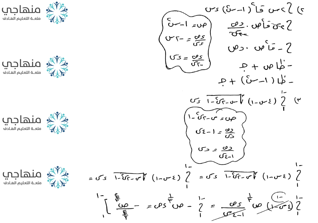 إجابات تدريبات الدرس - التكامل بالتعويض