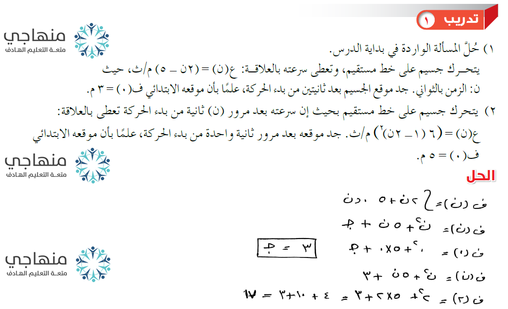 إجابات تدريبات الدرس - تطبيقات فيزيائية