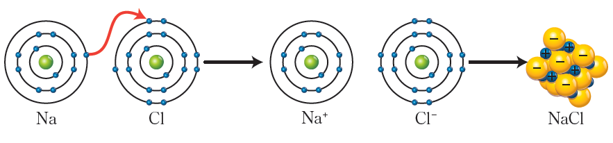 تفقد ذرة الصوديوم إلكترون لتصبح أيون Na+ .