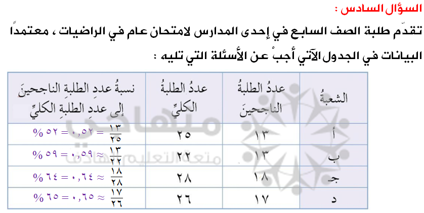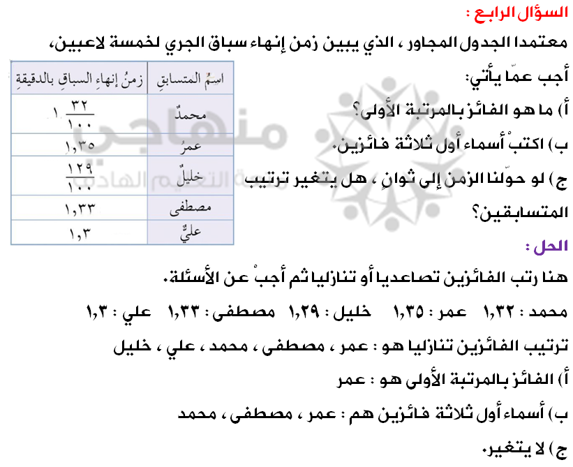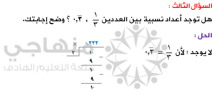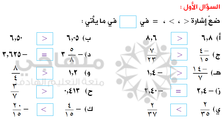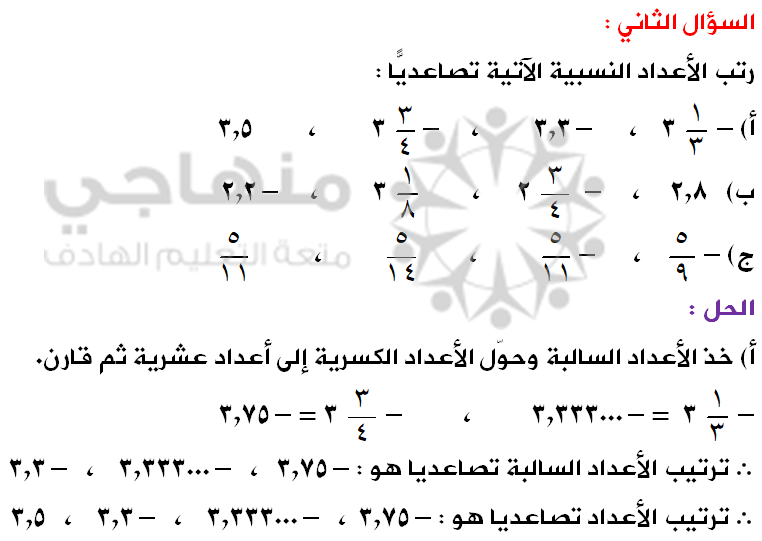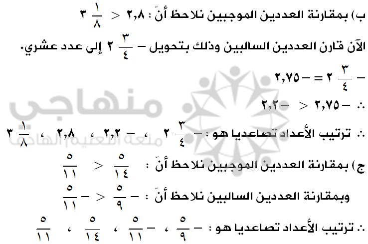 إجابات التمارين والمسائل - المقارنة بين الأعداد النسبية وترتيبها
