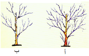 أ- أي الشكلين يمثل الشجرة بعد التقليم؟