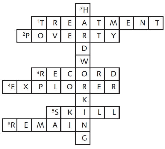 6 Read the dues 1-6 and write the words horizontally in the puzzle. You are given the first letter.