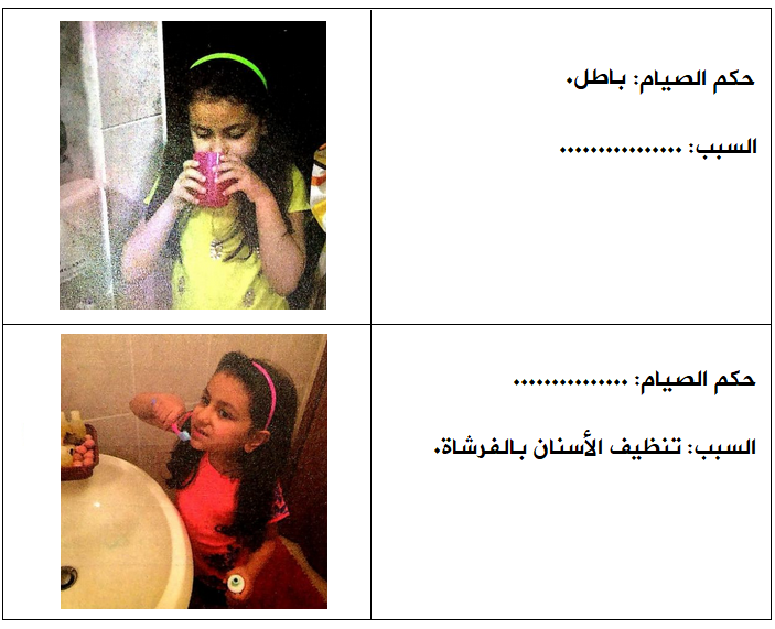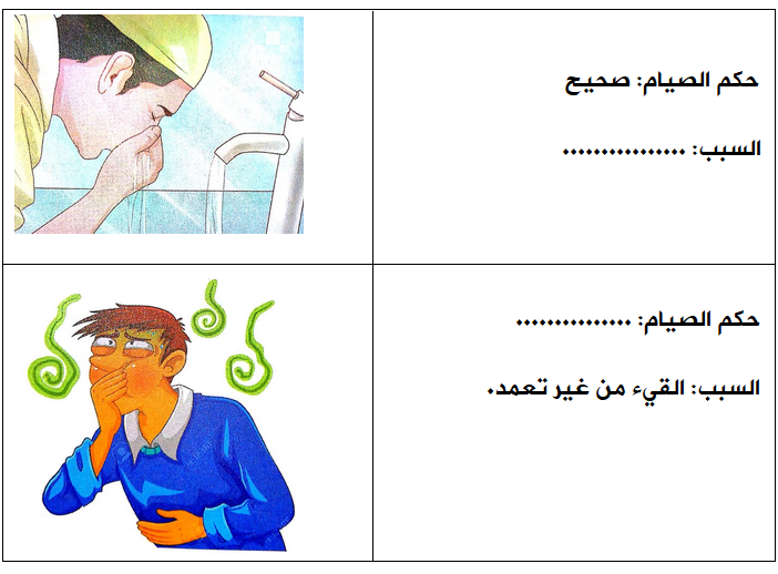 ب- نسِيَت ميسونُ، فشربت الماء وهي صائمة في رمضان، فصيامها ........