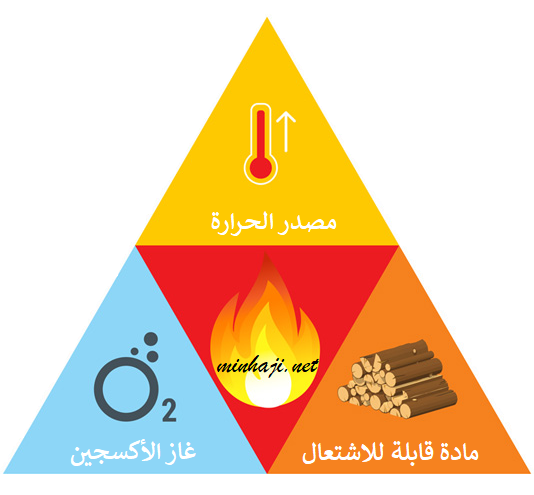 مثلث الحريق: العناصر الثلاثة اللازمة لحدوث الحريق.