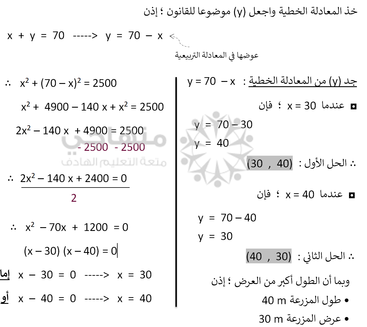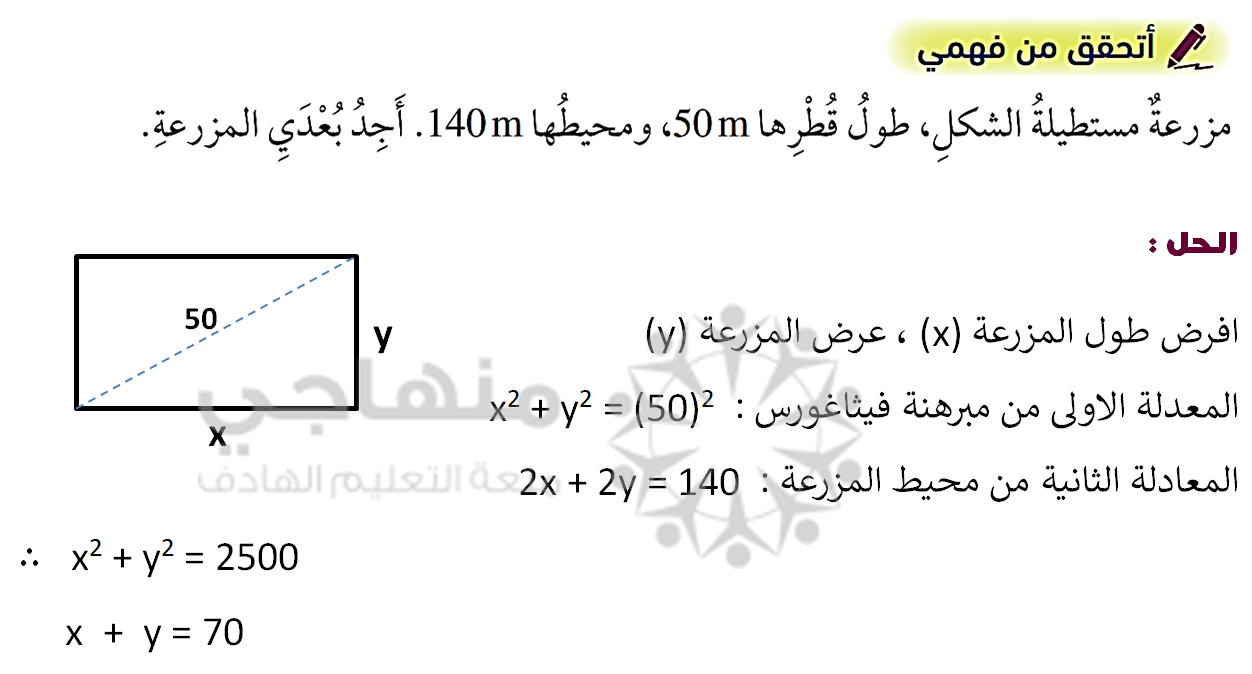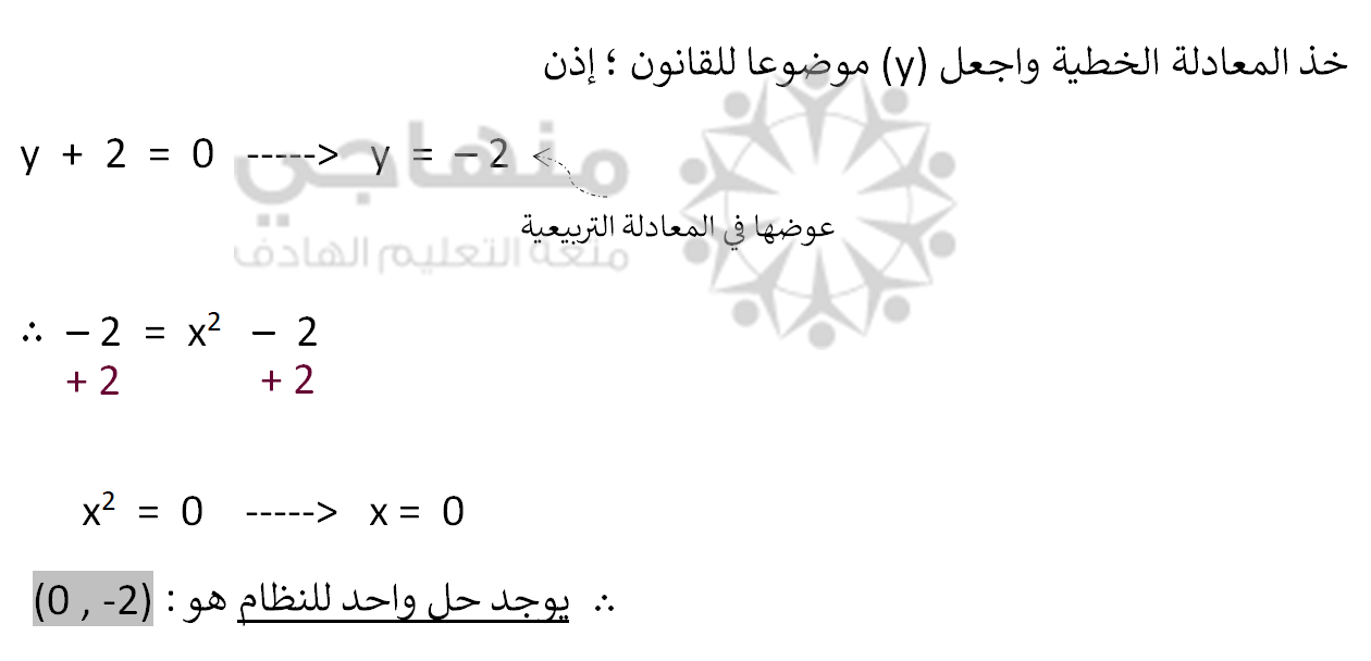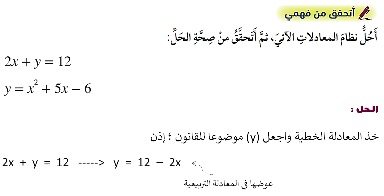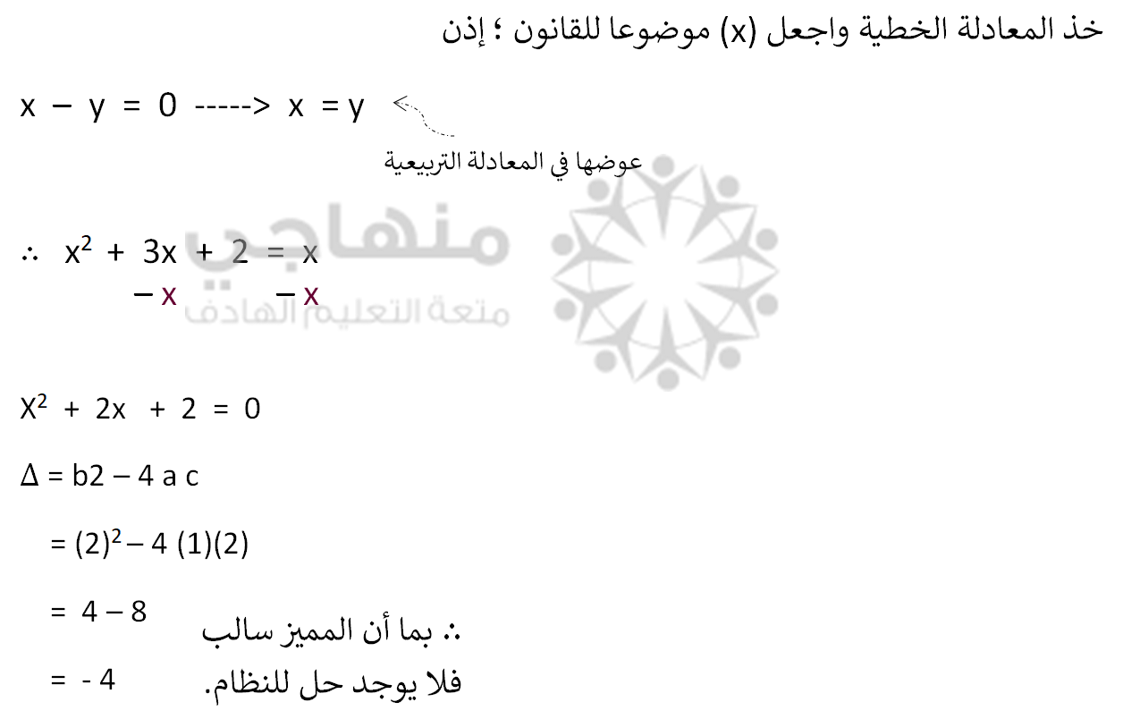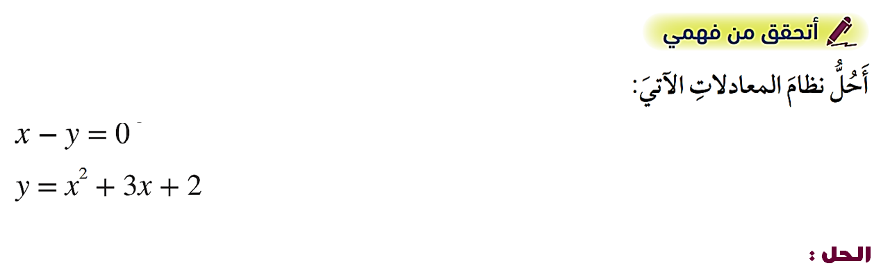 لفهم درس حل نظام مكون من معادلة خطية ومعادلة تربيعية شاهد الفيديو