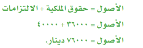 الأصول = الالتزمات + حقوق الملكية.