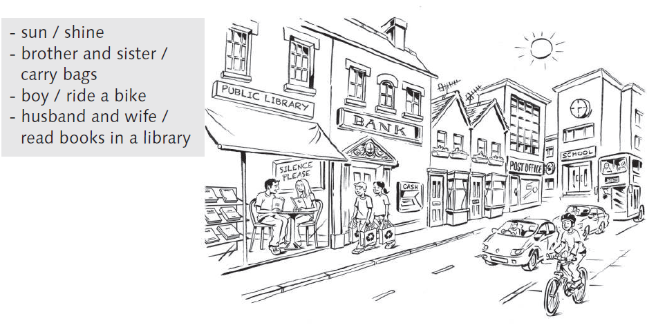 1 Look at the picture of a city centre at the weekend. What was happening? What was everyone doing? Write four sentences. Use the words in the box.