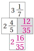 (15) أملأ الفراغ في المربعات، بحيث يكون ناتج جمع المربعين في الوسط هو العدد الكسري في المربع العلوي، وناتج طرحهما في المربع السفلي: