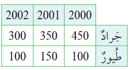 يبيّن الجدول الآتي تغير أعداد الجراد والطيور في النظام البيئي لحقلٍ، على مدى ثلاثة أعوام. ما العلاقة بين أعداد الطيور والجراد؟
