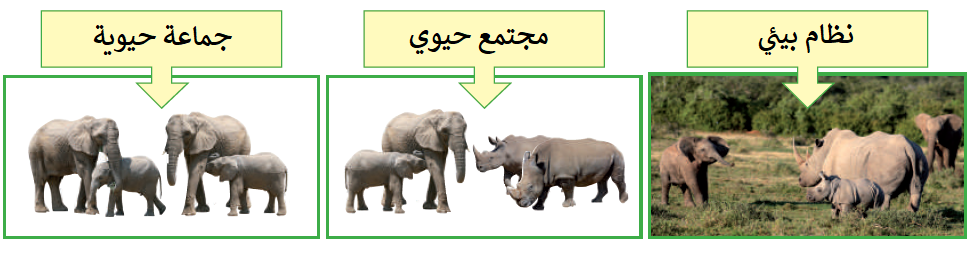 • تُسمى مجموعات الكائنات الحيّة التي تعيش في نظام بيئي، وتربط بينها علاقات مختلفة؛ ( مجتمع حيوي ).