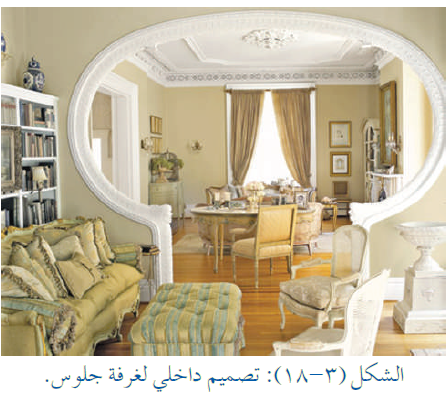 تأمل الشكل (3-18) والذي يمثل تصميماً داخلياً لغرفة جلوس، حلله حسب المعايير الآتية: