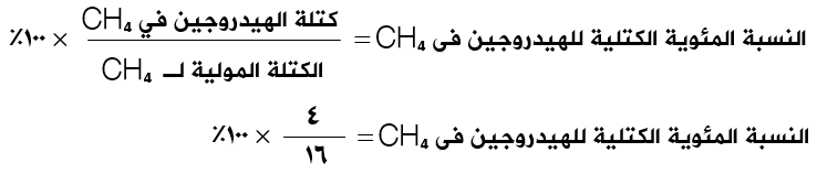 احسب النسب المئوية الكتلية للكربون والهيدروجين في الميثان CH4 .