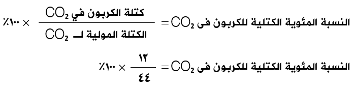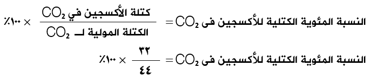 احسب النسب المئوية الكتلية للكربون والأكسجين في ثاني أكسيد الكربون CO2 .