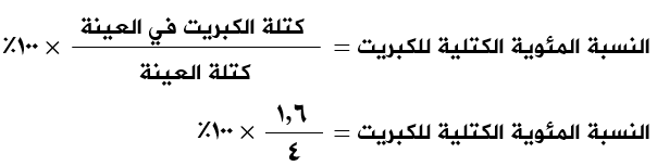 كتلة العينة = 1,6 + 2,4 = 4 غ