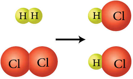 أعداد الذرات المتفاعلة وأنواعها هي نفسها أعداد الذرات الناتجة وأنواعها، ويمكن التعبير عن الشكل بالمعادلة الموزونة الآتية: