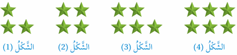 (1) أجد القاعدة التي تربط رقم الشكل بعدد النجوم في النمط الآتي: