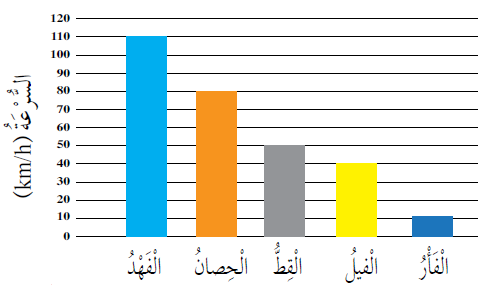 مستعيناً بالشكل الآتي الذي يبين السرعة القصوى لحيوانات مختلفة، أحسب المسافة التي تقطعها هذه الحيوانات في (15) min .