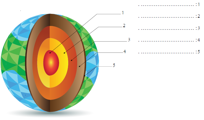 أستعمل الصورة: أكتب اسم الطبقة التي يُشير إليها كل رقم في الصورة، وتمثل طبقات الأرض.