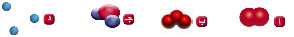 أختار الإجابة الصحيحة. الشكل الذي يمثل جزيء الماء، هو: