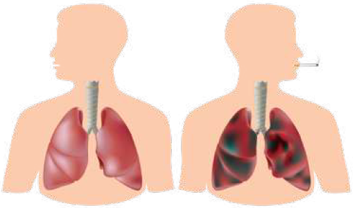الشخص الذي في يمين الصورة؛ لأنه مدخن، ورئتاه غير سليمتين بسبب التدخين.