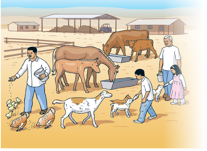 7 صيصان، 3 خراف، 1 صغير البقرة، 1 صغير الحصان.