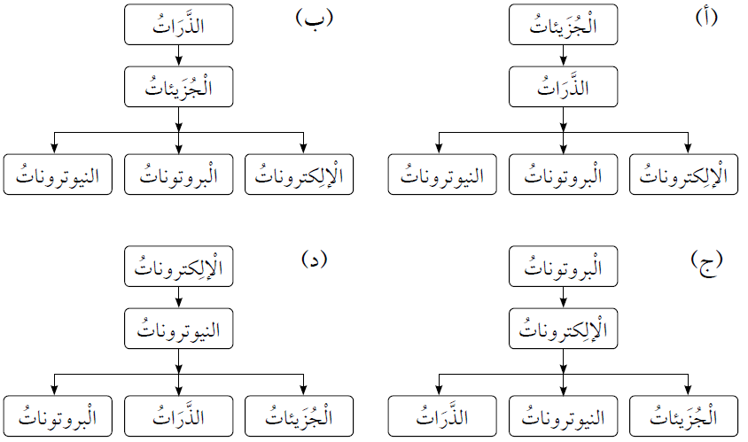 6- أي من المخططات الآتية يمثل تركيب المادة من الأكثر تعقيداً إلى أبسطها؟