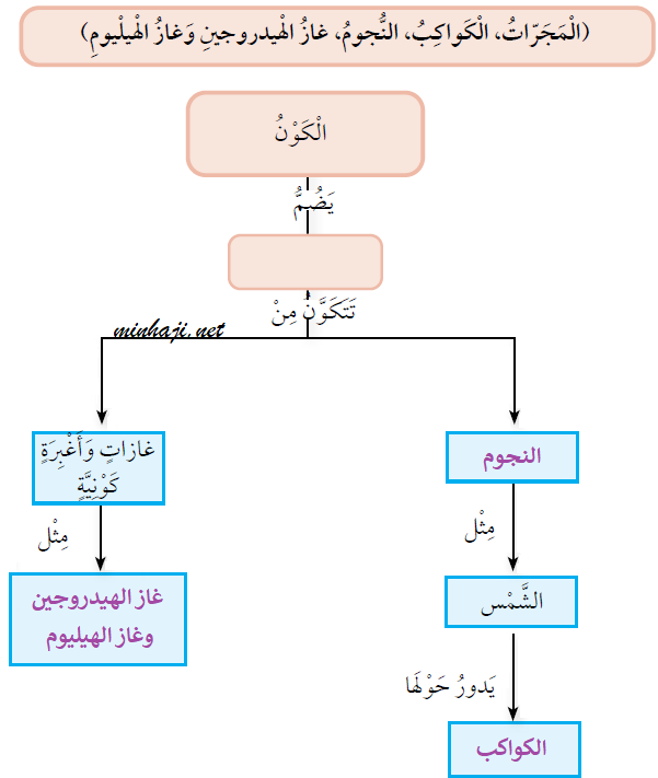 - ( المجرة ): تجمع هائل من النجوم، وأجرام سماوية أخرى، وغازات وأغبرة كونية.