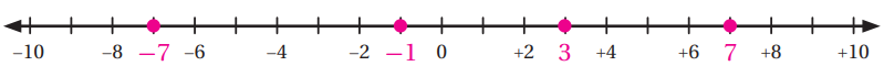 (4) أمثل الأعداد -7, 3, 7, -1 على خط الأعداد: