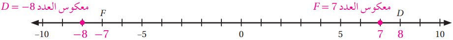 (18) ما معكوس العدد الصحيح الذي تمثله النقطة D على خط الأعداد؟ ما معكوس العدد الصحيح الذي تمثله النقطة F؟