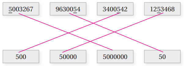 (4) أصل بخط بين العدد وقيمة الرقم الذي تحته خط فيه.