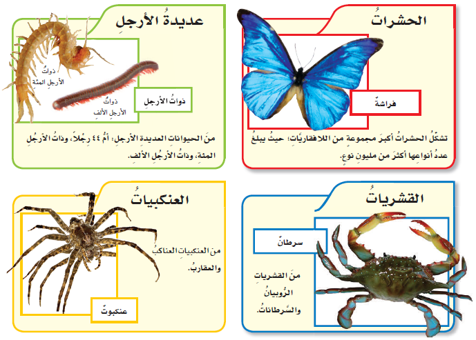 المفصليات: أكبر مجموعة في اللافقاريات، لها أرجل مفصلية، وأجسامها مقسّمة إلى أجزاء.