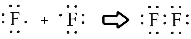 ولكي يكتمل مستوى الطاقة الخارجي للفلور بالإلكترونات، وتصل إلى حالة الاستقرار، فإنها بحاجة إلى إلكترون، فتتشارك ذرة الفلور الأولى بإلكترون مع ذرة الفلور الثانية فتتكون بينهما رابطة تساهمية.