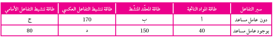 طاقة المعقد المنشط بوجود عامل مساعد: a