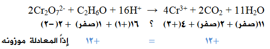 - كم مولاً من Cr2O72- يلزم لأكسدة مول واحد من C2H6O ؟
