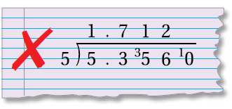 أقسم منزلة منزلة وعد الوصول للفاصلة أضعها في ناتج القسمة فوق الفاصلة في المقسوم.