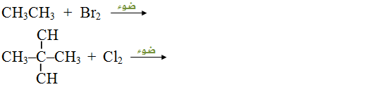 تتفاعل الألكانات مع الهالوجينات وفق المعادلة: