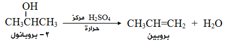 يؤدي تفاعل الكحول مع حمض الكبريتيك المركز الساخن إلى حذف جزيء ماء من ذرتي كربون متجاورتين وتكوين الكين.