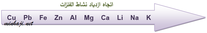 من الشكل تلاحظ أن البوتاسيوم هو أكثر الفلزات نشاطاً، والنحاس أقل الفلزات نشاطاً.