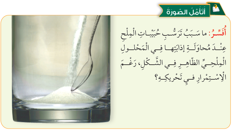 لأن المحلول أصبح يحتوي على أكبر كمية من الملح التي يمكن إذابتها فيه، ولا يمكن أن تذوب فيه أي كمية مضافة إليه حتى مع التحريك.