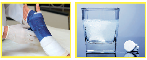 • ما نوع التغير الذي يحدث عند إضافة قرص الدواء إلى الماء؟